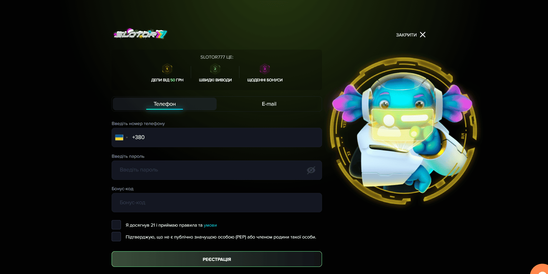 • Який стартовий бонус пропонує компанія Slotor777 гравцю з України?